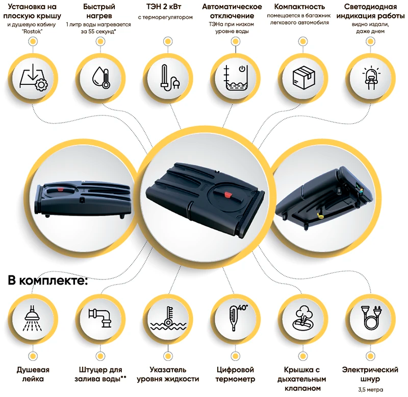 Преимущества бака для душа Rostok 80 литров с подогревом и лейкой: