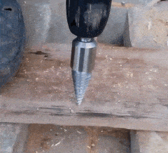 Дровоколщепокол на дрель - это конус резьбовой, диаметр 4 см, длина 20 см. Применяется, как насадка для дрели или перфоратора. Подходит при колке сухих полешек до 12 см.